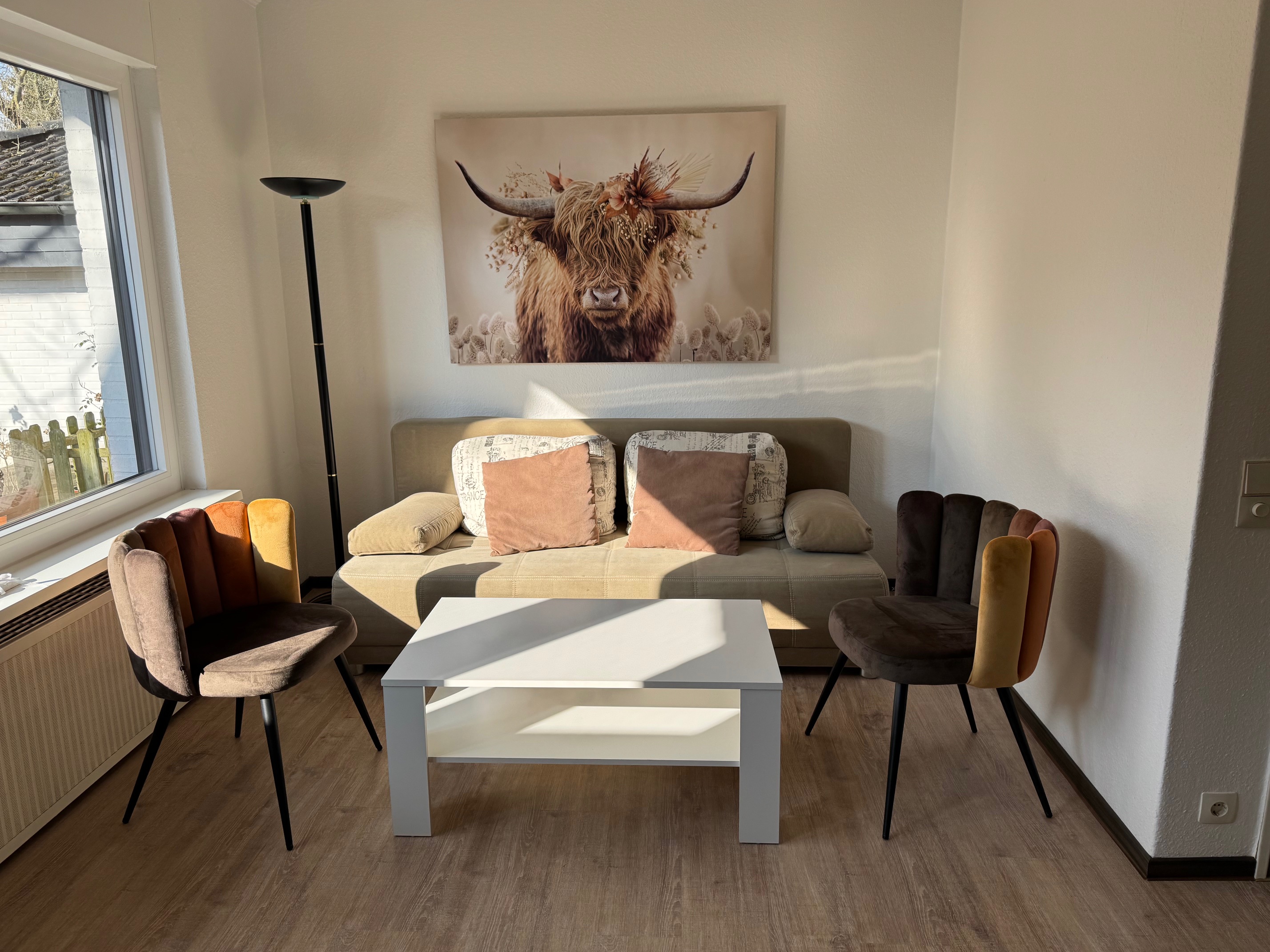 Eine Doppelschlafcouch (Liegefläche 1,60x2,00), Couchtisch mit 2 Sesseln